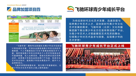 飞驰环球集团旗下拥有各类品牌项目涵盖文化艺术、餐饮行业、飞驰环球视频、环球直播、宣和艺术院、宣和斋培训、拜师学艺、环球文创、环球国学、国学百科、名人数据库、公益在线、3D展馆、环球收藏、成长平台、宣和洞藏酒、飞驰溯源、环球娱乐、环球名人俱乐部等为创业者量身打造的创业项目,让创业者实现自己的商机,实现您创业的梦想,开拓自己的事业,打造属于自己的平台。